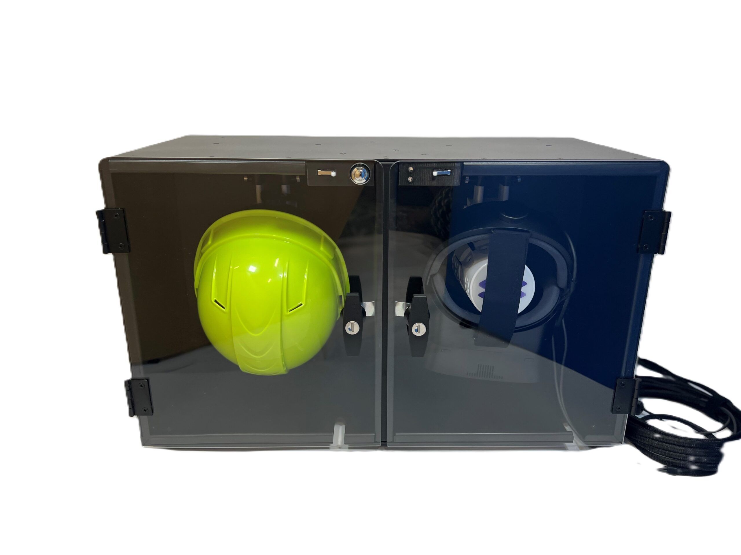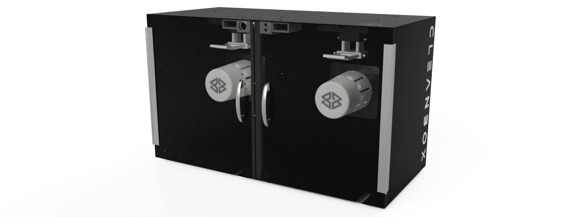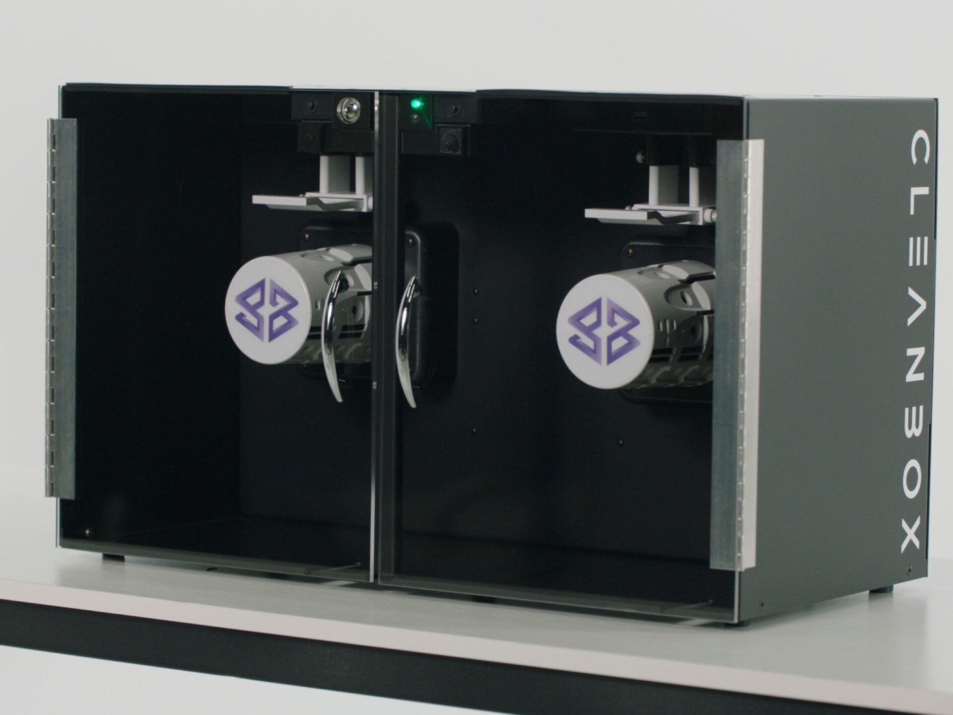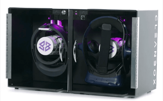 The Cleanbox CX2 is a two-bay UVC LED virtual reality, augmented reality, and mixed reality headset cleaner that supports two XR (VR/AR) headsets, headphones, or other head-worn devices at a time. The 1-minute cleaning cycle reaches a world-class 99.999% decontamination of the areas that make contact with the head and face. A faster 30-second cleaning cycle can disinfect to 99.99%. The CX2 can clean either 2 headsets at a time or one VR headset and two VR controllers. The Cleanbox CX2 is ideal for higher throughput cleaning and decontamination such as in large VR training classrooms, or in VR entertainment centers with limited space. The CX2 can clean upwards of 100 to 200 XR headsets per hour while following the Cleanbox Hygiene Protocol. The CX2 decontaminates at the same 99.999% efficiency in 1 minute as with all Cleanbox UVC LED decontamination systems. In addition, the CX2 will dry headsets during the same decontamination cycle. This unit is also easy to travel with and a fitted travel case is available.